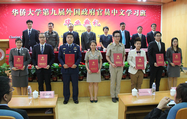毕业典礼在华侨大学厦门校区举行。中国国务院侨办文化司副司长汤翠英、泰国泰中文化经济协会副会长肖汉铭、华侨大学校长贾益民、泰国泰中文化经济协会副秘书长荣誉、泰王国驻厦门总领事馆副总领事孟坤、泰国皇家警察总署署长助理栅狄、华侨大学副校长张禹东等出席毕业典礼并为学员颁发结业证书。