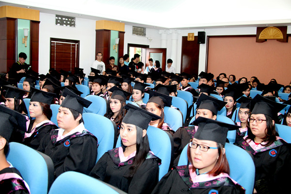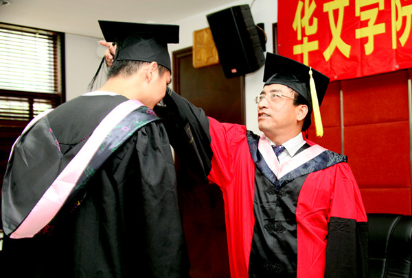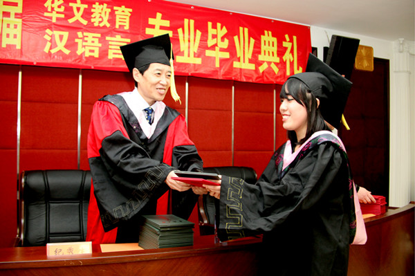 6月16日,华文学院2014届华文教育、汉语言专业毕业典礼在四号楼会议室举行。院长陈旋波、党委书记纪秀生、副院长李善邦及教学办、招生办、学生办、华文教育系、汉语言系等相关部门负责人和老师出席毕业典礼,来自印尼、泰国、缅甸、越南、日本等国的近100名毕业生和学生家长参加,毕业典礼由李善邦主持。