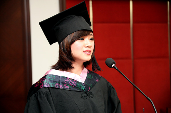 缅甸留学生代表陈桂菁发表毕业感言
