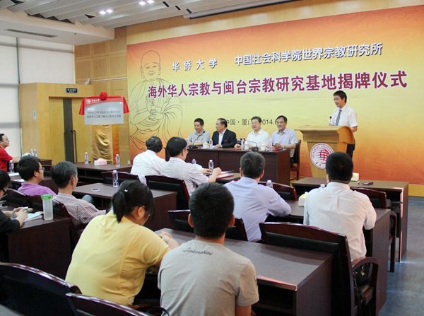 今日上午,“中国社会科学院世界宗教研究所海外华人宗教与闽台宗教研究基地”在华侨大学王源兴国际会议中心揭牌。中国宗教学会会长、中国社会科学院世界宗教研究所所长卓新平,福建省民族与宗教事务厅副厅长林致知,华侨大学校长贾益民,华侨大学副校长、中国宗教学会副会长张禹东出席揭牌仪式并为研究基地揭牌。福建师范大学社会历史学院林国平教授、福建省民族与宗教事务厅政法处处长张东晖,以及华侨大学哲学与社会发展学院的部分师生等参加揭牌仪式。