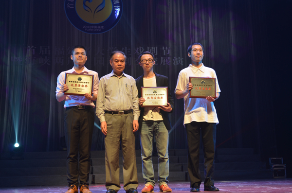 5月18日晚,首届福建省大学生戏剧节暨海峡两岸校园戏剧交流展演闭幕式暨颁奖晚会在福建农林大学举行,我校斩获7项大奖:参演剧目《十三角关系》获优秀演出奖;旅游学院学生纪丽莹荣获优秀导演奖;纪丽莹、经济与金融学院学生许锦程荣获优秀表演奖;文学院学生蒋圆圆、法学院学生李让获表演奖;穿越话剧社舞美部获舞美奖、化妆造型奖;我校荣获优秀组织奖。