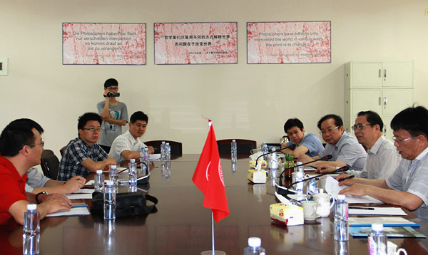 在听取汇报和实地考察后,冯潮华高度评价了中心科研人员的配备和学校对于中心办公场所及设施的投入建设。在了解到中心资料室入藏了德文版马恩全集(MEGA2),冯潮华表示,中心在资料建设方面达到了国内一流水准。