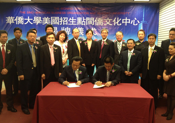 副校长吴季怀、美国侨商联合会主席郑棋代表双方签订合作协议