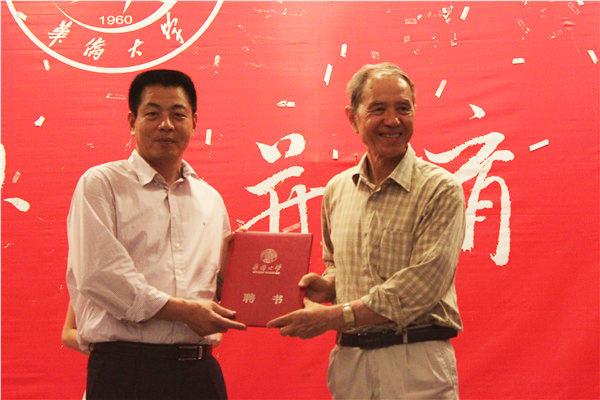 副校长吴季怀为奚广庆教授(右)颁发华侨大学兼职教授聘书