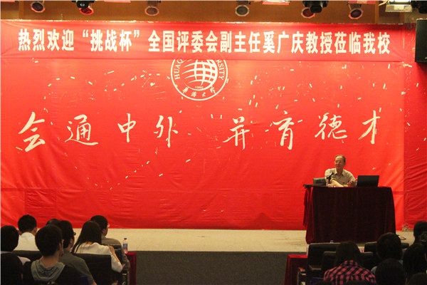 在主题为“在‘挑战杯’大赛中插上腾飞翅膀”的讲座中,奚广庆旁征博引,讲解当下“挑战杯”哲学社科类作品的参赛情况、出现的问题以及解决方法。