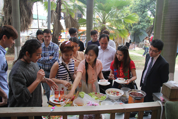 近日,与我校交换实习的泰国博仁大学及庄甲盛皇家大学的十名学生结束为期五个月的酒店实习,来校与旅游学院境外生进行文化交流。学院团委安排中泰文化专题讲座及泉州宗教文化实地考察,并邀请其参加第十九届旅游创新实践技能大赛之餐饮产品创意设计与制作比赛。