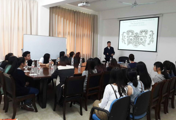 在中泰文化专题讲座上,文学院黄文虎博士从甲骨文的起源与发展谈到中国汉字的演变,让参与聆听的师生领会了中国汉字源远流长的文化魅力。其间并就中国功夫和泰拳等大家感兴趣的话题进行互动交流。