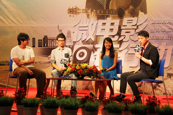 活动现场,微电影创作者们与在场师生互动交流。