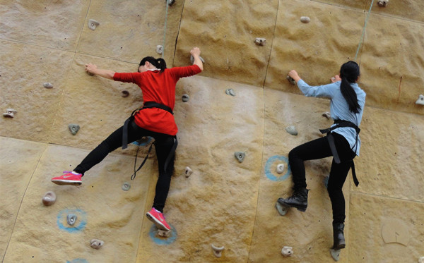 随后,青年教师们分别参与了穿越电网、高空抓杆以及高空攀岩三项素质拓展活动。活动中单身青年教职工们合理分工、密切配合、相互鼓励有效地完成了挑战,克服了恐惧,展现了风采,也增进了感情。