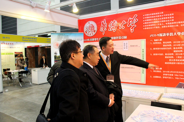 近年来,我校不断加强香港招生工作,2013年共计320名香港学生到我校攻读本科学位,目前在校香港学生已有1100多名。我校专门派出招生宣传小组参加此次博览会,招生宣传小组现场派发宣传资料、解答咨询,介绍我校的学科设置、收生要求、学习费用等,并请来在校香港学生现身说法,加强宣传推介我校的办学及外招政策。