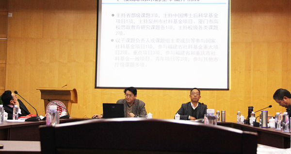 评审会在厦门校区王源兴国际会议中心G203举行。社会科学研究处负责人,二级教授陈鸿儒、黄海德、孙道进、周世兴担任评审专家。