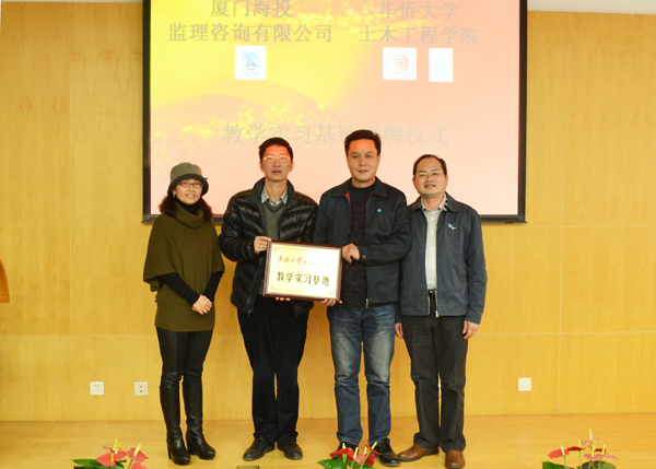 2013年12月31日,“教学实习基地”授牌仪式在厦门校区王源兴国际会议中心G103举行。土木工程学院党委书记陈捷、副院长秦旋代表学院向厦门海投建设监理咨询有限公司授予“教学实习基地”牌匾。