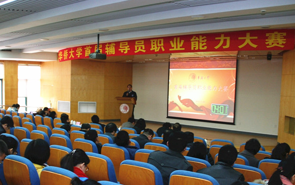 华侨大学首届辅导员职业能力大赛由校党委学工部主办,辅导员协会承办,旨在深入贯彻落实党的十八大和十八届三中全会精神,按照《中共中央、国务院关于进一步加强和改进大学生思想政治教育的意见》及教育部《普通高等学校辅导员队伍建设规定》的相关文件要求,落实立德树人根本任务,加强辅导员队伍专业化、职业化建设,提升辅导员队伍整体素质。