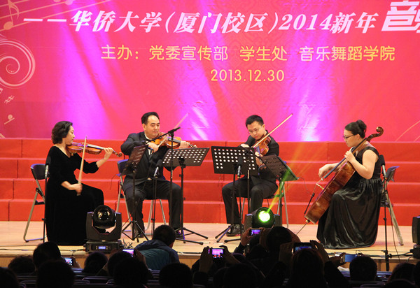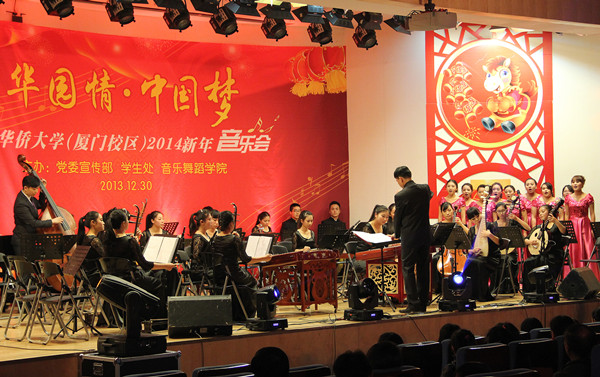 30日晚,“华园情·中国梦”华侨大学厦门校区2014新年音乐会在王源兴国际会议中心204报告厅举行。副校长刘塨、张禹东及相关部门、学院负责人与现场近六百名师生共同欣赏了这一年一度的音乐盛宴。