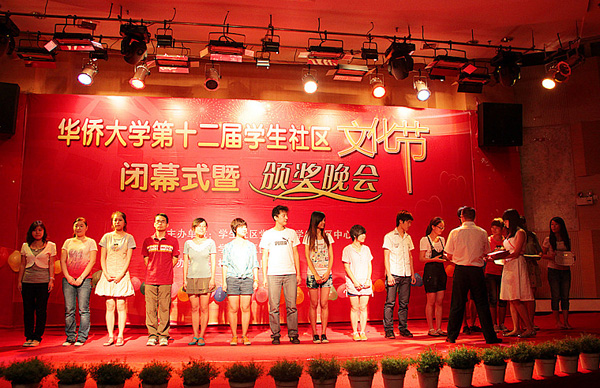 华侨大学第十二届社区文化节闭幕式暨颁奖晚会分别于6月3日和6月4日晚在厦门、泉州校区举行。学生处、组织部、人事处等部门负责人,部分学院相关负责人及辅导员等出席晚会。