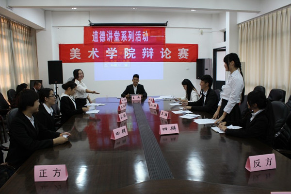 12月6日下午,由美术学院承办的道德讲堂系列活动之“道德存心”主题辩论赛在美术楼大会议室顺利举行。美术学院副院长陈清、团委书记宋庆彬、团委老师王交来、葛卫遥担任此次评委。