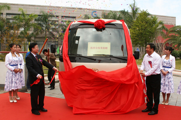 马儒沛、王树生共同为陈明金先生捐赠的校车揭幕(孟祥龙 摄)