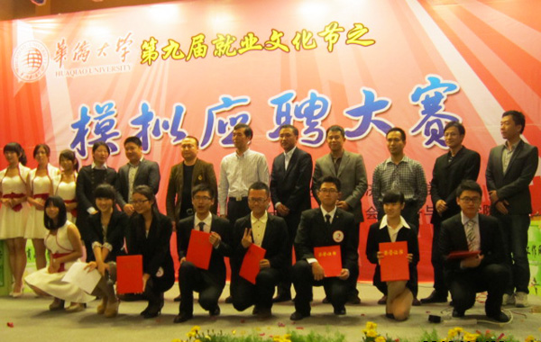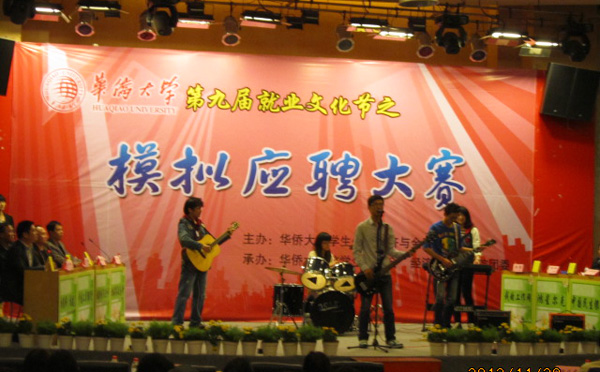 华侨大学第九届就业文化节之模拟应聘大赛总决赛,11月30日晚上19点在明德堂隆重举行,本次比赛由校学生处与经济与金融学院联合主办。中国工商银行、中国民生银行、鸿星尔克、拍鞋网等八家知名企业经理担任此次比赛评委,经济与金融学院院长胡日东、副院长林俊国,团委老师孙君芳、魏利斌以及其他学院的学生代表应邀到场参加比赛。