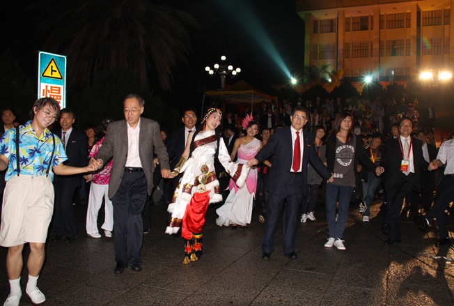 观看演出的海内外领导嘉宾与师生一同载歌载舞