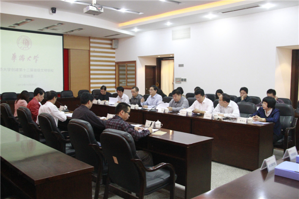 会上,党委宣传部部长李辉作了题为《弘扬道德风尚,构建和谐校园——努力开创华侨大学文明建设的新局面》的汇报,从组织领导、道德讲堂建设、志愿服务、网络文明传播、公德教育、意识形态领域管理、节约型校园建设以及参与文明城市创建等八个方面对我校2012年以来文明学校创建工作所取得的成效进行全面总结。