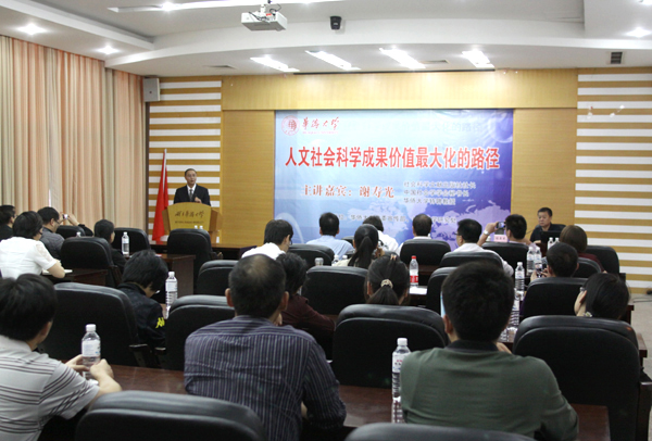 10月23日下午,中国社会科学院社会科学文献出版社社长、中国社会学学会秘书长、华侨大学特聘教授谢寿光应邀来校作题为“人文社会科学成果价值最大化的路径”的学术报告。