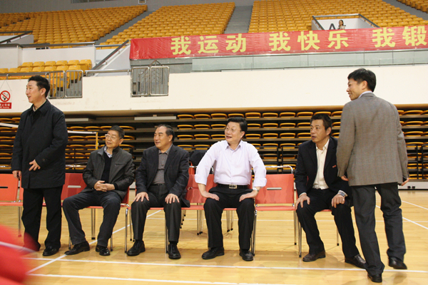 马儒沛副主任(左四)、雷振刚司长(左一)与校领导贾益民、李冀闽、吴季怀等在场边观战