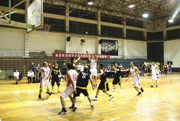 国侨办机关篮球队与华大教授篮球队友谊赛现场(张为健 摄)