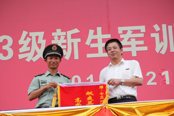 汇报表演完后,校领导朱琦环、吴季怀向承训部队的首长和教官表示衷心感谢,并向承训部队赠送纪念品和锦旗;向圆满完成任务的2013级新生表示热烈的祝贺,同时,希望同学们将军队的优秀品质和作风,带到今后的大学生活和学习实践中,并在华园的大舞台上充分展示自我、勇攀高峰。