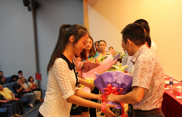学生代表向教师代表献花,表达节日的祝福。