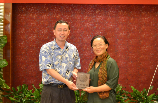 资产经营有限公司总经理涂伟为赵冰洁教授颁发华侨大学资产经营有限公司顾问聘书