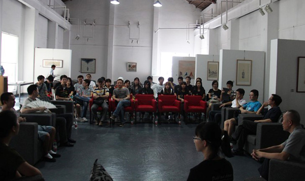 画展现场还举行了一场座谈会。本次画展的指导老师薛军宁阐述了自己的教学理念,即要用辩证的态度对待素描,在对学生作品给予肯定的同时也指出了其中的不足;陈现军认为,同学有不同的绘画方法,并且希望同学们在课余时间内继续练习素描以提高自己的感性认识。与会同学也谈了自己的创作心得。