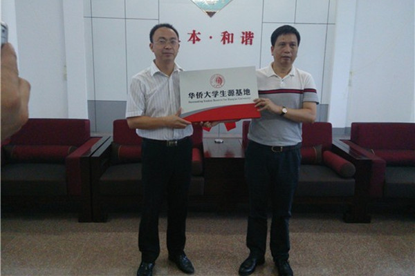 6月25日上午,工商管理学院党委书记姚培生代表学校与汕头市澄海中学校长林惜平签订了生源基地建设协议,并代表学校向该校颁授了“华侨大学生源基地”牌匾。颁授仪式结束后,姚培生与该校副校长、华大78级数学系校友李镇永及相关师生进行简短的座谈。
