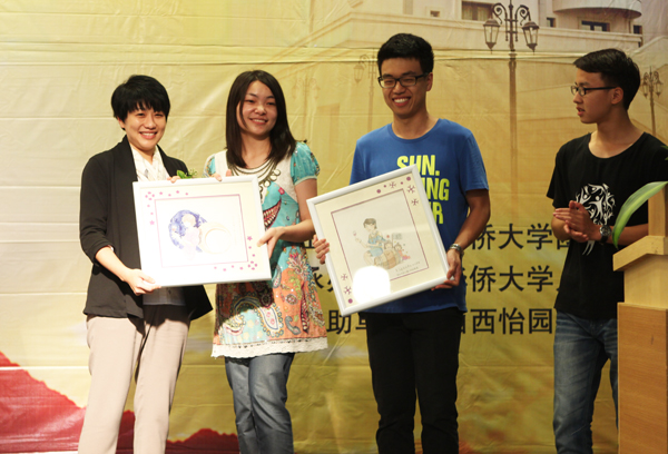 讲座最后还为第三届创意作品竞赛之“怡园酒标设计”大赛的获奖者颁奖,土木工程学院刘凌菁的作品《贺岁》荣获金奖;美术学院陈健、外国语学院蒲维等作品《花好月圆》,化工学院罗倩羽、于晨、王尧冬的作品《水墨莲花》获银奖。