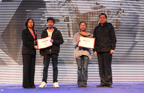 关一凡副校长(右)、林辉莲会长(左)为澳门城市休闲吧建筑设计比赛获奖学生颁奖