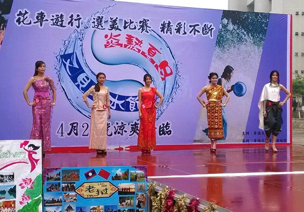 留学生们为大家带来舞龙、舞狮、马来西亚舞蹈、缅甸竹竿舞、街舞表演等精彩节目。最令人流连忘返的是选美比赛,来自老挝、缅甸、马来西亚、越南等国家的六名女留学生参与角逐“泼水节小姐”。经才艺展示、大众评委投票等环节,最终,老挝学生赖慧敏获得“最佳人气奖”,缅甸学生罗明菊、老挝学生赖慧敏、缅甸学生孙美君分别获本届“泼水节小姐”前三名。这些佳丽个个多才多艺,美艳动人,为在场师生送上诚挚的祝福和精心准备的节目,引得现场热血沸腾,尖叫连连。