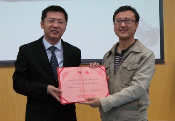土木工程学院党委书记陈捷、团委副书记杨恒为詹有义等四位创业导师颁发了土木工程学院青年创业导师聘书,鼓励创业班同学在实践过程中多与“过来人”交流,尽量避免走弯路。