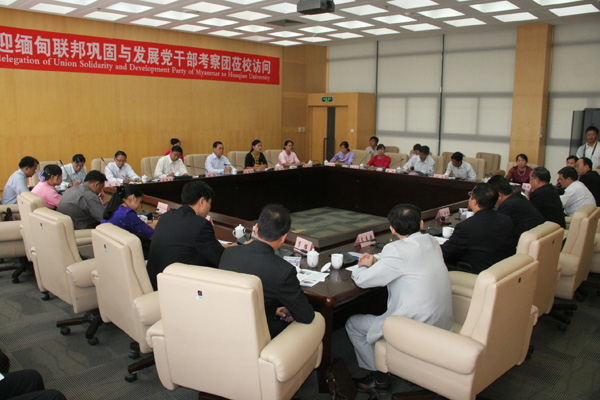吴季怀全面介绍了华大如何开展对外招生、组织开展教学,及历年的缅甸学子在华大勤奋学习等情况,并与校招生处处长吴春安一起,就客人所关心的对缅招生制度、招生时间、奖助学金制度、学习费用等细节问题,分别予以回应和详细说明。