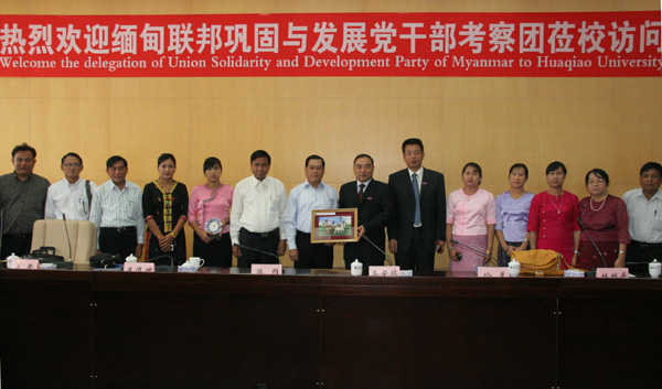 24日上午,以巩固与发展党中央执行委员吴登瑞为团长的缅甸联邦巩固与发展党干部考察团一行15人,莅临华侨大学厦门校区参观访问,中联办相关人员陪同参访。