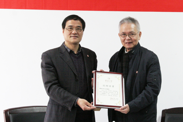 12月12日下午,校董许丕新先生莅临华侨华人研究院参观指导,并与学院教师座谈交流。莅校访问期间,副校长张禹东向许丕新先生致送了捐赠证书。