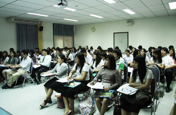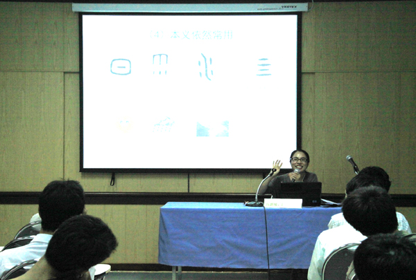 11月14日,泰国农业大学孔子学院中华文化系列讲座第九讲开讲。公派教师高惠敏主讲《词义演变的历史足迹》,吸引了各院系一百多名师生前来学习、探讨。