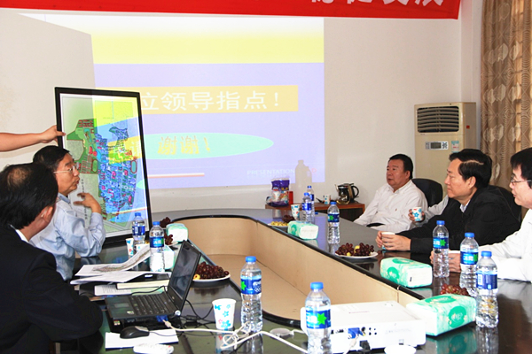 李冀闽向杜志滨一行介绍校友大楼选址情况