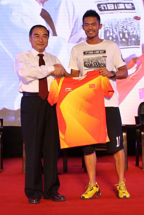林丹向学校赠送伦敦奥运会比赛战袍