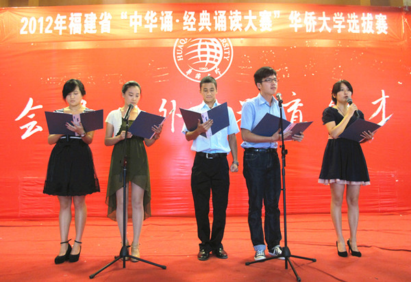 由学生处主办、文学院承办的2012年福建省“中华诵·经典诵读大赛”华侨大学选拔赛9月25日下午在明德堂举行。
