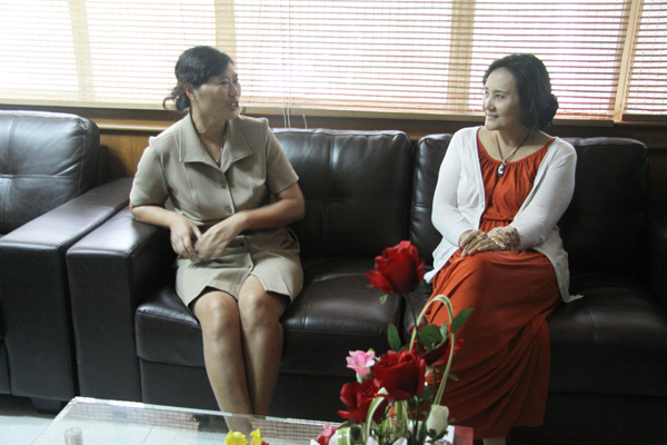 蒋依桐女士(右)与泰国农大孔院中方院长李晓洁座谈