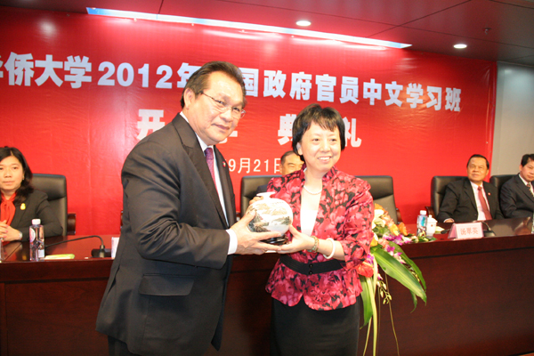 21日上午,华侨大学2012年外国政府官员中文学习班开学典礼在厦门校区行政研发大楼401室隆重举行。