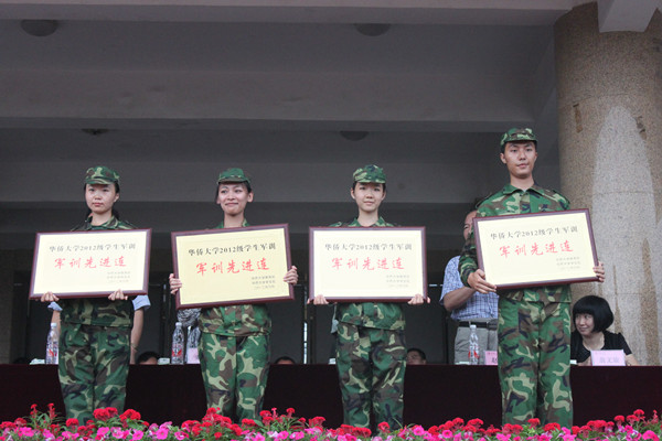 校领导称赞2012级新同学通过军训,身体得到了锻炼,意志得到了磨砺,精神面貌发生了可喜的变化,组织纪律性和团结协作精神有了明显的提高。同时希望同学们不要忘记自己的教官,称“他们是同学们迈进华侨大学的第一任老师,也是陪你们走过大学第一次考验的挚友”;希望2012级境内新生珍惜这次军训经历,铭记所学到的知识和道理,用心去感受军人的品格和情怀,把军队的优良品质和作风,带到今后的学习实践中,在新的起点上,取得新的、更加辉煌的成绩。希望同学们努力做一名政治坚定、品德高尚、理想远大的优秀青年;努力做一名奋发有为、意志坚定、作风过硬的优秀青年;努力做一名心存感恩、热心公益、反哺社会的优秀青年。