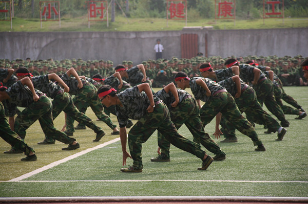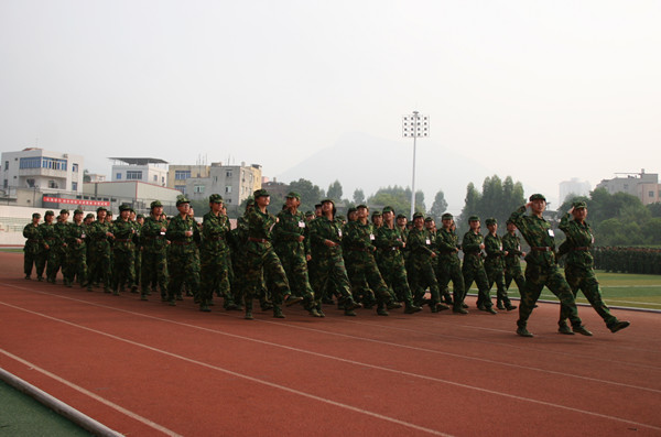 华侨大学2012级境内新生军训活动今日结束。上午,新生军训会操暨表彰大会在泉州校区和厦门校区田径运动场分别举行,参训学生表演了刺杀操、军体拳、卫生与救护、格斗术和匕首操等项目,展示自己的军训成果。
