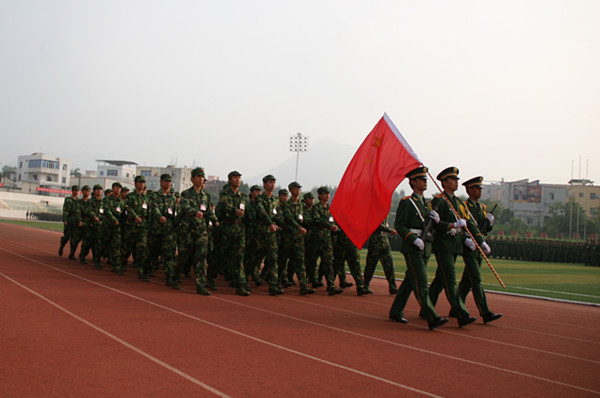 参训新生代表发表感言,感谢教官,感谢老师;感谢学校提供的这大学第一堂课,带给他们锻炼和成长;感谢指导训练的73141部队的首长官兵们的辛勤付出,让他们永生难忘。他们在军训中学会了勇敢面对,挑战自我,超越自我,并将在今后的生活中继续发扬这种精神,不断向着新的目标迈进。