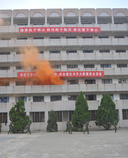 为全面加强新生安全教育、保护新生合法权益、维护校园安定秩序,18日下午,我校与泉州市丰泽区公安消防大队联合开展消防自救、安全逃生与灭火救援综合演练。消防演练在北区学生宿舍18号楼前操场举行,共分为紧急疏散演练、云梯消防车救援、消防业务技能演示、以及灭火器扑救火盆、液化气罐演练以及消防知识图片展览、消防器材装备展示四个部分。