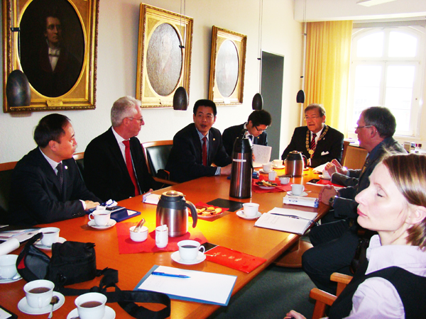 访问团一行还先后与罗斯托克大学国际处副处长Soren Koeppe博士及教育学院院长Friedhelm Eicker博士进行了富有成效的会谈,确定了合作的细节与重点。校长助理、国际交流学院院长曾路教授详细介绍了我校国际化办学思路及理念,希望两校能签署框架合作协议,为今后两校具体的合作提供保障与支持。